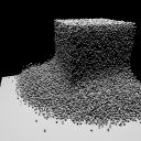 100,000 particles falling from initially loosely-placed positions;