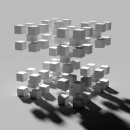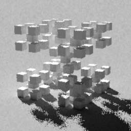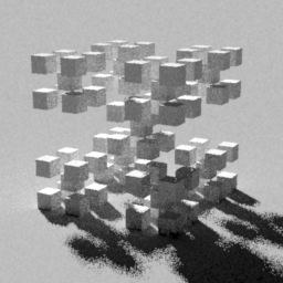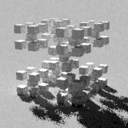 Instead, what we see is sublinear decrease in render times (meaning that the reduced weight of the second bounce rays allows more at -ad 64 to be ignored), and a slight increase in image quality (though, again, that could be caused by the smoother penumbras). The effect of this method is to create a system by which we can force more ambient rays per pixel at the first bounce (where their visual effect is greater), and fewer for the second bounce and beyond (where visual effect is calculable, but less important).